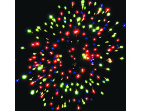 4. Красно-синяя сфера и облако треска (хризантема). (до 25 м)